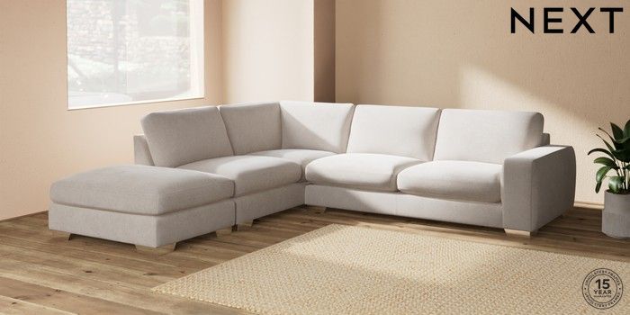 7.2.10 Houghton Deep Sit Large Open End Corner Chaise - Left Hand Chunky Chenille Oyster Large Square Angle - Chrome Metal | Made Click here to use our website with more accessibility support, for example screen readers