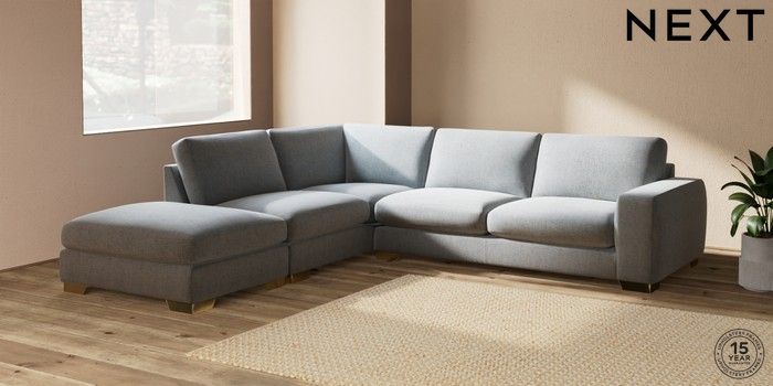 7.2.10 Houghton Deep Sit Large Open End Corner Chaise - Left Hand Chunky Marl Mid Grey Large Square Angle - Brushed Brass | Made Click here to use our website with more accessibility support, for example screen readers