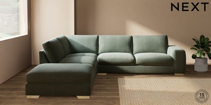 7.2.10 Houghton Deep Sit Large Open End Corner Chaise - Left Hand Chunky Texture Mid Forest Green Large Square Angle - Light | Made Click here to use our website with more accessibility support, for example screen readers