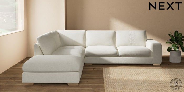 7.2.10 Houghton Deep Sit Large Open End Corner Chaise - Left Hand Chunky Texture Oyster Large Square Angle - Chrome Metal | Made Click here to use our website with more accessibility support, for example screen readers