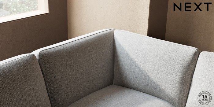 7.2.10 Houghton Deep Sit Large Open End Corner Chaise - Left Hand Chunky Weave Dove Grey Large Square Angle - Brushed Brass | Made Click here to use our website with more accessibility support, for example screen readers