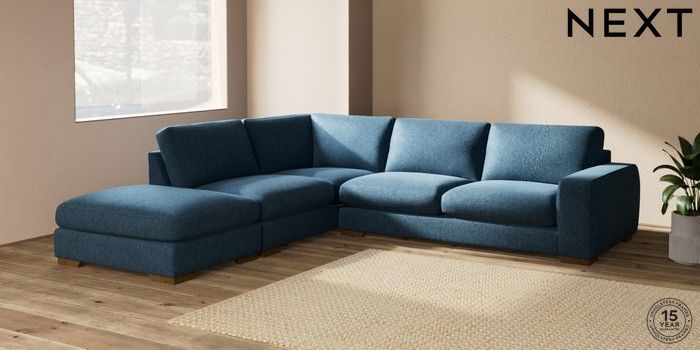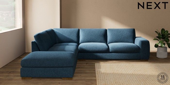 7.2.10 Houghton Deep Sit Large Open End Corner Chaise - Left Hand Cotswold Chenille Dark Blue Large Square Angle - Mid | Made Click here to use our website with more accessibility support, for example screen readers