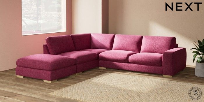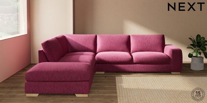 7.2.10 Houghton Deep Sit Large Open End Corner Chaise - Left Hand Cotswold Chenille Dark Raspberry Pink Large Square Angle - Light | Made Click here to use our website with more accessibility support, for example screen readers