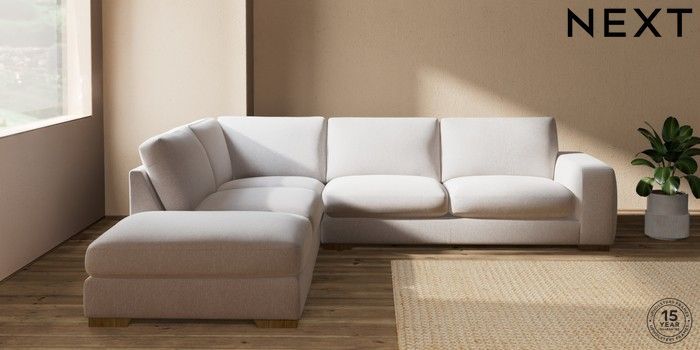7.2.10 Houghton Deep Sit Large Open End Corner Chaise - Left Hand Cotswold Chenille Oyster Large Square Angle - Mid | Made Click here to use our website with more accessibility support, for example screen readers