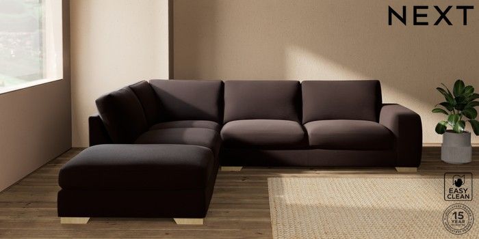 7.2.10 Houghton Deep Sit Large Open End Corner Chaise - Left Hand Fine Chenille Easy Clean Chocolate Brown Large Square Angle - Light | Made Click here to use our website with more accessibility support, for example screen readers
