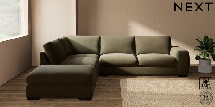 7.2.10 Houghton Deep Sit Large Open End Corner Chaise - Left Hand Fine Chenille Easy Clean Dark Moss Green Large Square Angle - Dark | Made Click here to use our website with more accessibility support, for example screen readers
