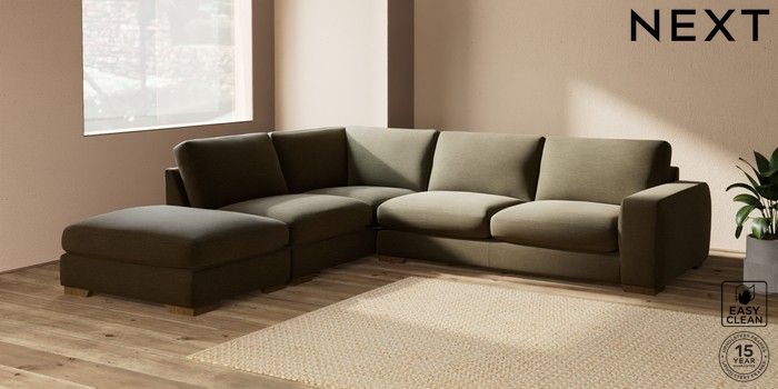 7.2.10 Houghton Deep Sit Large Open End Corner Chaise - Left Hand Fine Chenille Easy Clean Dark Moss Green Large Square Angle - Mid | Made Click here to use our website with more accessibility support, for example screen readers