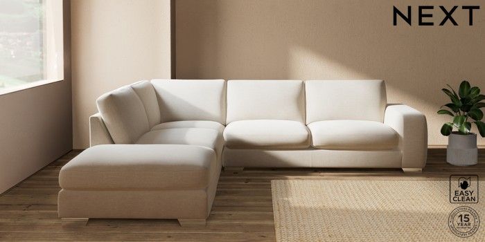 7.2.10 Houghton Deep Sit Large Open End Corner Chaise - Left Hand Fine Chenille Easy Clean Oyster Large Square Angle - Chrome Metal | Made Click here to use our website with more accessibility support, for example screen readers