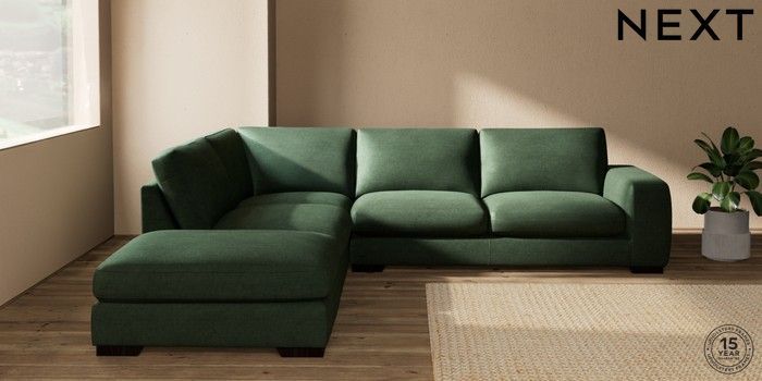 7.2.10 Houghton Deep Sit Large Open End Corner Chaise - Left Hand Luxe Chenille Dark Green Large Square Angle - Dark | Made Click here to use our website with more accessibility support, for example screen readers
