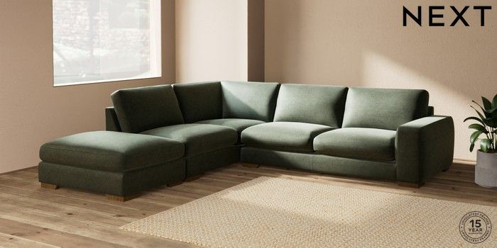 7.2.10 Houghton Deep Sit Large Open End Corner Chaise - Left Hand Luxe Chenille Mid Green Large Square Angle - Mid | Made Click here to use our website with more accessibility support, for example screen readers