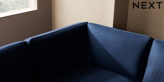 7.2.10 Houghton Deep Sit Large Open End Corner Chaise - Left Hand Luxe Chenille Navy Blue Large Square Angle - Brushed Brass | Made Click here to use our website with more accessibility support, for example screen readers