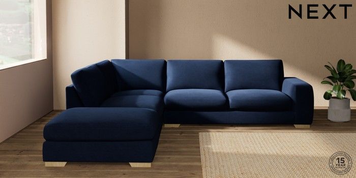 7.2.10 Houghton Deep Sit Large Open End Corner Chaise - Left Hand Luxe Chenille Navy Blue Large Square Angle - Light | Made Click here to use our website with more accessibility support, for example screen readers