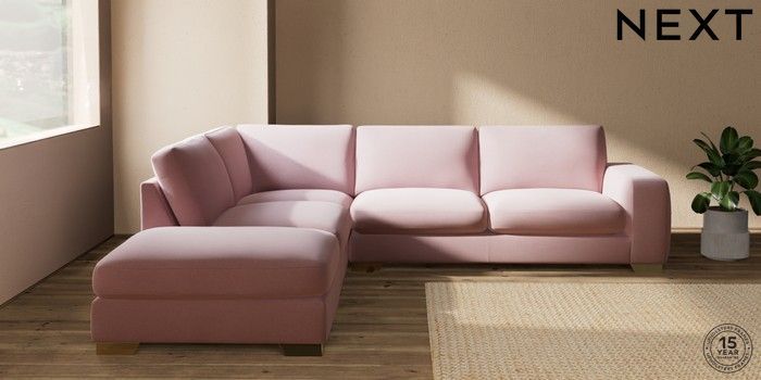 7.2.10 Houghton Deep Sit Large Open End Corner Chaise - Left Hand Natural Mix Light Rose Pink Large Square Angle - Brushed Brass | Made Click here to use our website with more accessibility support, for example screen readers