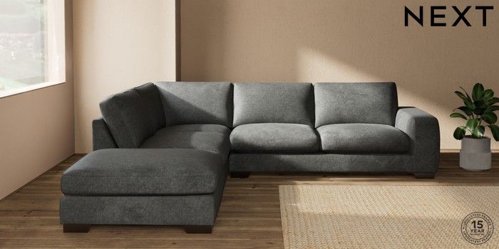 7.2.10 Houghton Deep Sit Large Open End Corner Chaise - Left Hand Plush Chenille Dark Grey Large Square Angle - Gunmetal | Made Click here to use our website with more accessibility support, for example screen readers