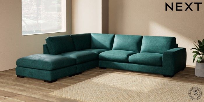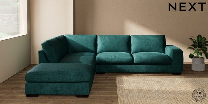 7.2.10 Houghton Deep Sit Large Open End Corner Chaise - Left Hand Plush Chenille Dark Teal Green Large Square Angle - Dark | Made Click here to use our website with more accessibility support, for example screen readers