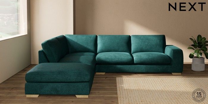 7.2.10 Houghton Deep Sit Large Open End Corner Chaise - Left Hand Plush Chenille Dark Teal Green Large Square Angle - Light | Made Click here to use our website with more accessibility support, for example screen readers
