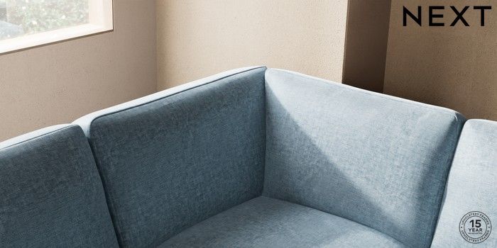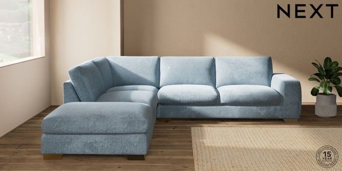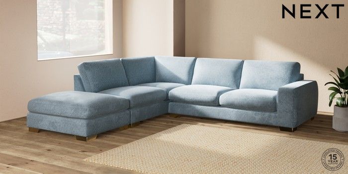 7.2.10 Houghton Deep Sit Large Open End Corner Chaise - Left Hand Plush Chenille Light Blue Large Square Angle - Brushed Brass | Made Click here to use our website with more accessibility support, for example screen readers