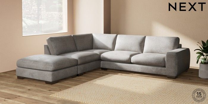 7.2.10 Houghton Deep Sit Large Open End Corner Chaise - Left Hand Plush Chenille Light Grey Large Square Angle - Gunmetal | Made Click here to use our website with more accessibility support, for example screen readers