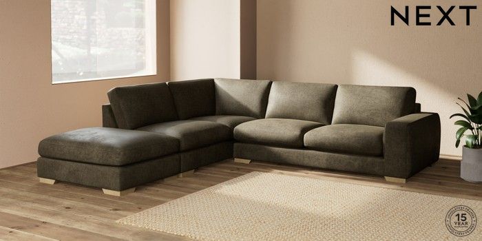 7.2.10 Houghton Deep Sit Large Open End Corner Chaise - Left Hand Plush Chenille Moss Green Large Square Angle - Light | Made Click here to use our website with more accessibility support, for example screen readers