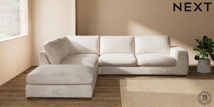7.2.10 Houghton Deep Sit Large Open End Corner Chaise - Left Hand Plush Chenille Oyster Large Square Angle - Mid | Made Click here to use our website with more accessibility support, for example screen readers