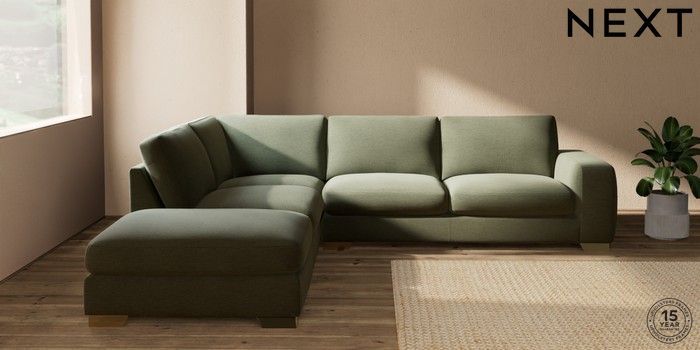 7.2.10 Houghton Deep Sit Large Open End Corner Chaise - Left Hand Ripple Chenille Mid Moss Green Large Square Angle - Brushed Brass | Made Click here to use our website with more accessibility support, for example screen readers