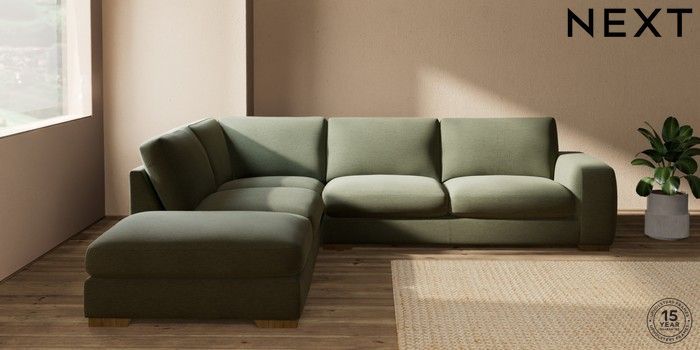 7.2.10 Houghton Deep Sit Large Open End Corner Chaise - Left Hand Ripple Chenille Mid Moss Green Large Square Angle - Mid | Made Click here to use our website with more accessibility support, for example screen readers