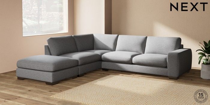 7.2.10 Houghton Deep Sit Large Open End Corner Chaise - Left Hand Studio Chenille Mid Grey Large Square Angle - Gunmetal | Made Click here to use our website with more accessibility support, for example screen readers