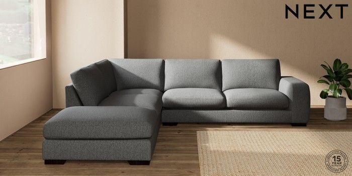 7.2.10 Houghton Deep Sit Large Open End Corner Chaise - Left Hand Tweedy Chenille Dark Grey Large Square Angle - Dark | Made Click here to use our website with more accessibility support, for example screen readers