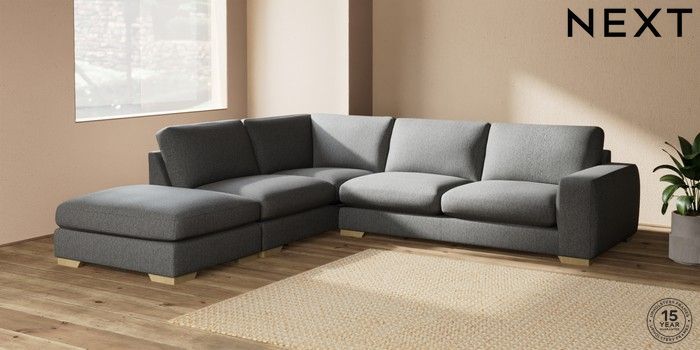 7.2.10 Houghton Deep Sit Large Open End Corner Chaise - Left Hand Tweedy Chenille Dark Grey Large Square Angle - Light | Made Click here to use our website with more accessibility support, for example screen readers