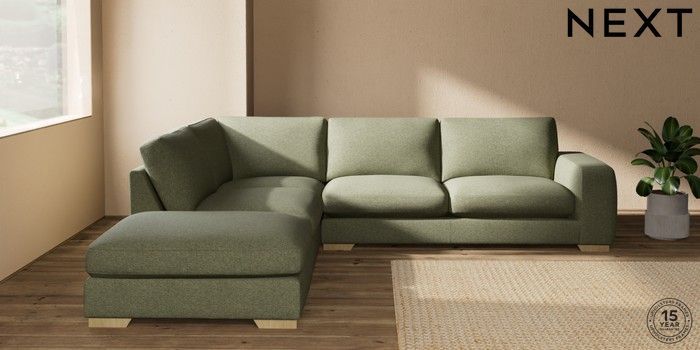 7.2.10 Houghton Deep Sit Large Open End Corner Chaise - Left Hand Tweedy Chenille Mid Moss Green Large Square Angle - Light | Made Click here to use our website with more accessibility support, for example screen readers
