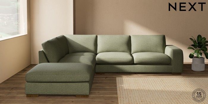 7.2.10 Houghton Deep Sit Large Open End Corner Chaise - Left Hand Tweedy Chenille Mid Moss Green Large Square Angle - Mid | Made Click here to use our website with more accessibility support, for example screen readers