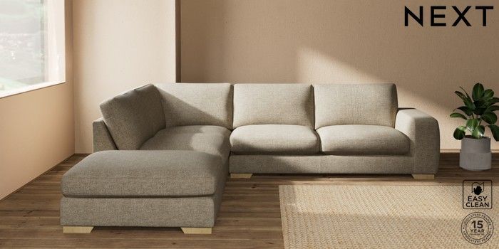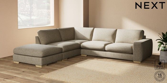 7.2.10 Houghton Deep Sit Large Open End Corner Chaise - Left Hand Woven Chenille Easy Clean Mid Natural Large Square Angle - Light | Made Click here to use our website with more accessibility support, for example screen readers