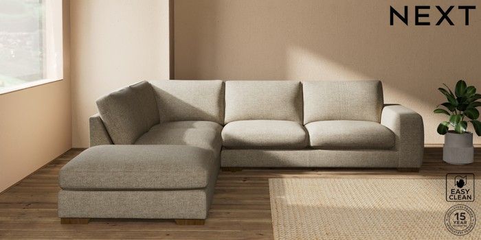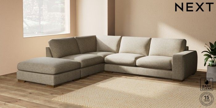 7.2.10 Houghton Deep Sit Large Open End Corner Chaise - Left Hand Woven Chenille Easy Clean Mid Natural Large Square Angle - Mid | Made Click here to use our website with more accessibility support, for example screen readers