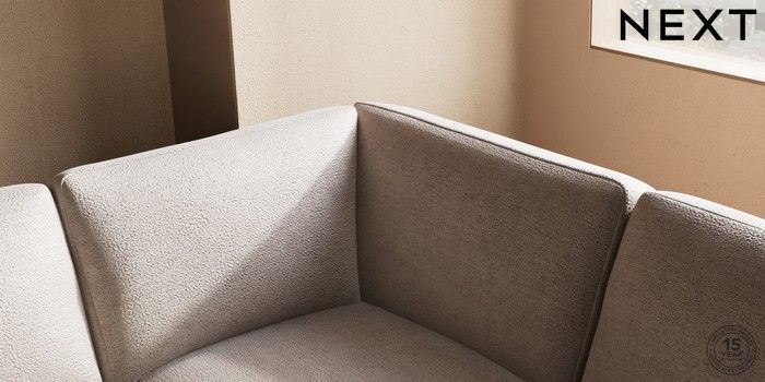 7.2.10 Houghton Deep Sit Large Open End Corner Chaise - Right Hand Boucle Chenille Light Natural Large Square Angle - Chrome Metal | Made Click here to use our website with more accessibility support, for example screen readers