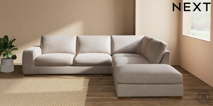 7.2.10 Houghton Deep Sit Large Open End Corner Chaise - Right Hand Boucle Chenille Light Natural Large Square Angle - Mid | Made Click here to use our website with more accessibility support, for example screen readers