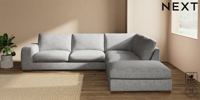 7.2.10 Houghton Deep Sit Large Open End Corner Chaise - Right Hand Chunky Boucle Easy Clean Light Grey Large Square Angle - Mid | Made Click here to use our website with more accessibility support, for example screen readers
