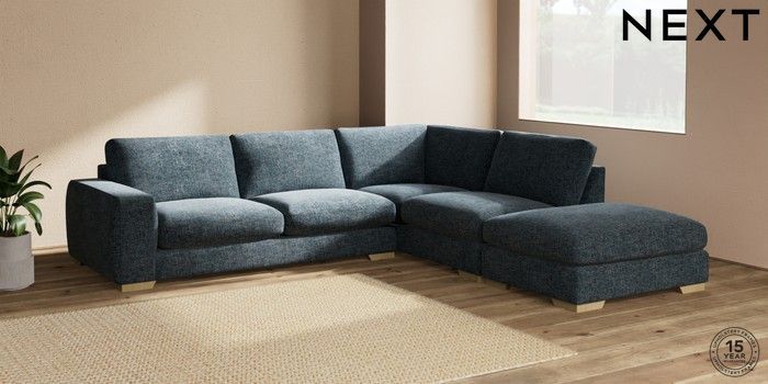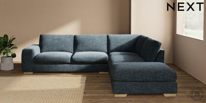 7.2.10 Houghton Deep Sit Large Open End Corner Chaise - Right Hand Chunky Chenille Dark Navy Blue Large Square Angle - Light | Made Click here to use our website with more accessibility support, for example screen readers