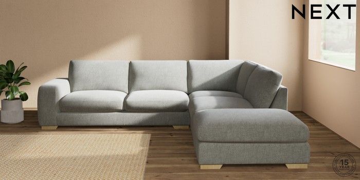 7.2.10 Houghton Deep Sit Large Open End Corner Chaise - Right Hand Chunky Chenille Light Grey Large Square Angle - Light | Made Click here to use our website with more accessibility support, for example screen readers