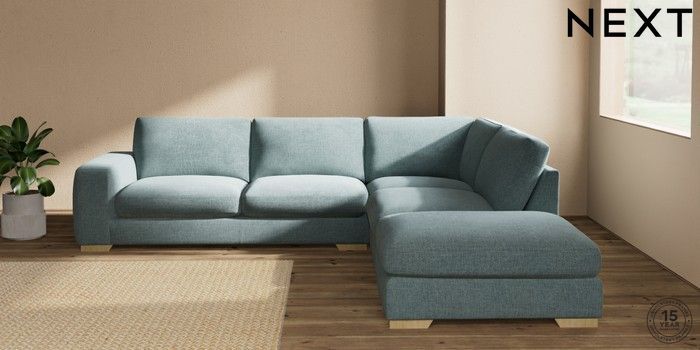 7.2.10 Houghton Deep Sit Large Open End Corner Chaise - Right Hand Chunky Chenille Light Teal Green Large Square Angle - Light | Made Click here to use our website with more accessibility support, for example screen readers