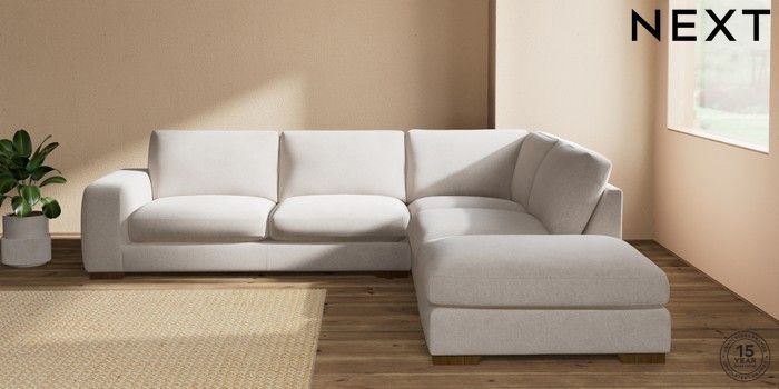 7.2.10 Houghton Deep Sit Large Open End Corner Chaise - Right Hand Chunky Chenille Oyster Large Square Angle - Mid | Made Click here to use our website with more accessibility support, for example screen readers