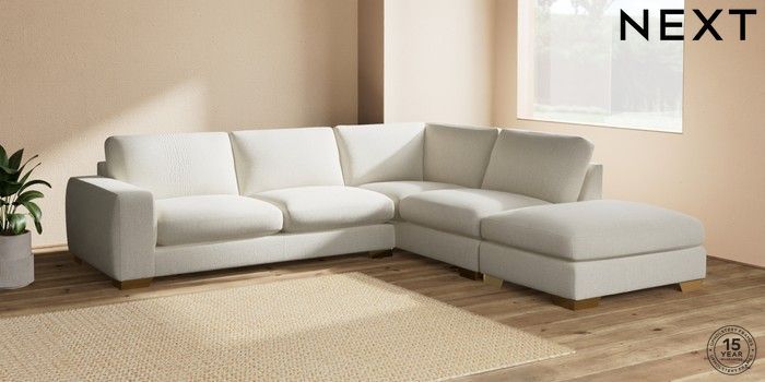 7.2.10 Houghton Deep Sit Large Open End Corner Chaise - Right Hand Chunky Texture Oyster Large Square Angle - Brushed Brass | Made Click here to use our website with more accessibility support, for example screen readers