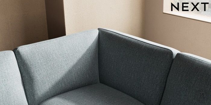 7.2.10 Houghton Deep Sit Large Open End Corner Chaise - Right Hand Chunky Weave Mid Blue Large Square Angle - Brushed Brass | Made Click here to use our website with more accessibility support, for example screen readers