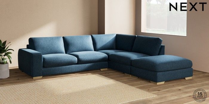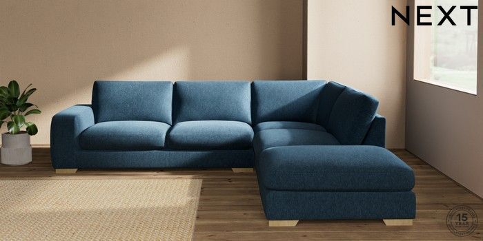 7.2.10 Houghton Deep Sit Large Open End Corner Chaise - Right Hand Cotswold Chenille Dark Blue Large Square Angle - Light | Made Click here to use our website with more accessibility support, for example screen readers