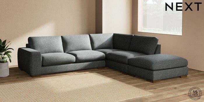 7.2.10 Houghton Deep Sit Large Open End Corner Chaise - Right Hand Cotswold Chenille Dark Grey Large Square Angle - Mid | Made Click here to use our website with more accessibility support, for example screen readers