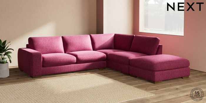 7.2.10 Houghton Deep Sit Large Open End Corner Chaise - Right Hand Cotswold Chenille Dark Raspberry Pink Large Square Angle - Mid | Made Click here to use our website with more accessibility support, for example screen readers