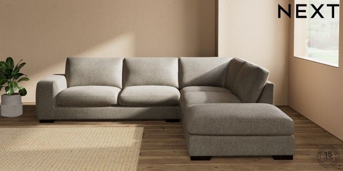 7.2.10 Houghton Deep Sit Large Open End Corner Chaise - Right Hand Cotswold Chenille Mid Mink Brown Large Square Angle - Dark | Made Click here to use our website with more accessibility support, for example screen readers