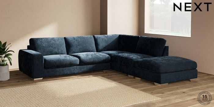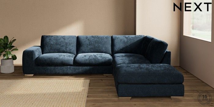 7.2.10 Houghton Deep Sit Large Open End Corner Chaise - Right Hand Distressed Velour Midnight Blue Large Square Angle - Chrome Metal | Made Click here to use our website with more accessibility support, for example screen readers