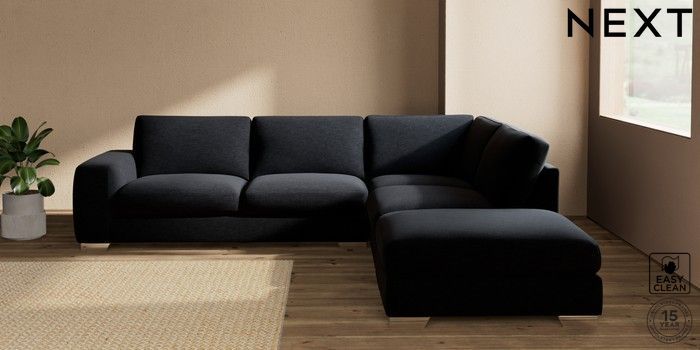7.2.10 Houghton Deep Sit Large Open End Corner Chaise - Right Hand Fine Chenille Easy Clean Black Large Square Angle - Chrome Metal | Made Click here to use our website with more accessibility support, for example screen readers