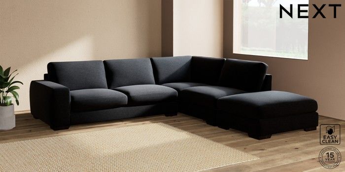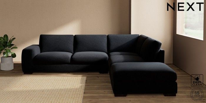 7.2.10 Houghton Deep Sit Large Open End Corner Chaise - Right Hand Fine Chenille Easy Clean Black Large Square Angle - Dark | Made Click here to use our website with more accessibility support, for example screen readers