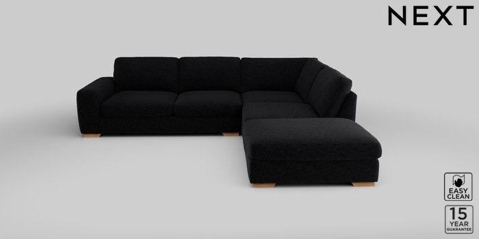 7.2.10 Houghton Deep Sit Large Open End Corner Chaise - Right Hand Fine Chenille Easy Clean Black Large Square Angle - Light | Made Click here to use our website with more accessibility support, for example screen readers